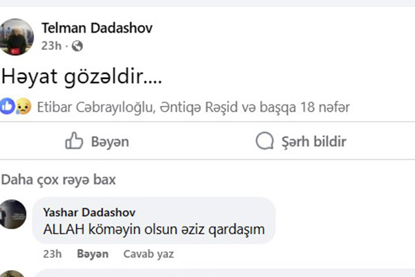 O, vəfat etməzdən bir neçə saat əvvəl sosial şəbəkə səhifəsində belə paylaşım edib: "Həyat gözəldir..."