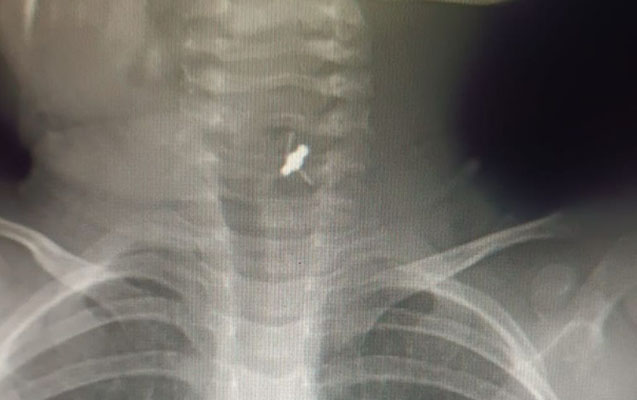 “Aparılan müayinələr əsasında xəstənin yad cisim udduğu məlum olub. Xəstəyə bronxoskopiya icra edilərək baş bronx mənfəzindən yad cisim - saç sancağı xaric edilib”.