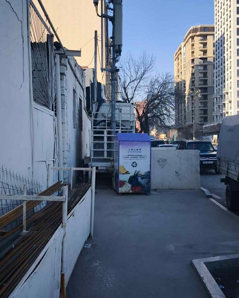 Ceyhun Hacıbəyli küçəsinin digər hissəsində isə müəssisəyə məxsus olan qazanxana həm də tullantı üçün ayrılmalı olan yeşiklərin də səkinin ortasına qoyulmasına səbəb olub. Nəticədə də piyadalar yolun avtomobillər üçün olan hissəsinə düşüb hərəkət etməli olurlar.
