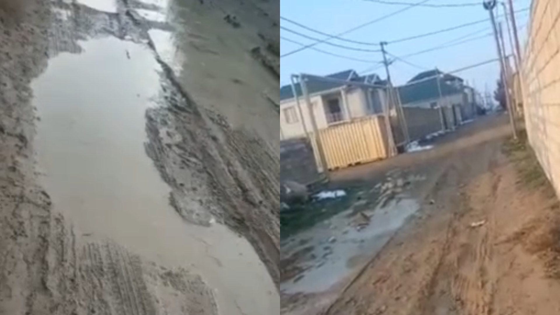 Görüntülərdən də göründüyü kimi yolun asfalt örtüyü yoxdur. Həmçinin bir neçə gün yağan qarın əriməsi ilə yollarda iri gölməçələr yaranıb.