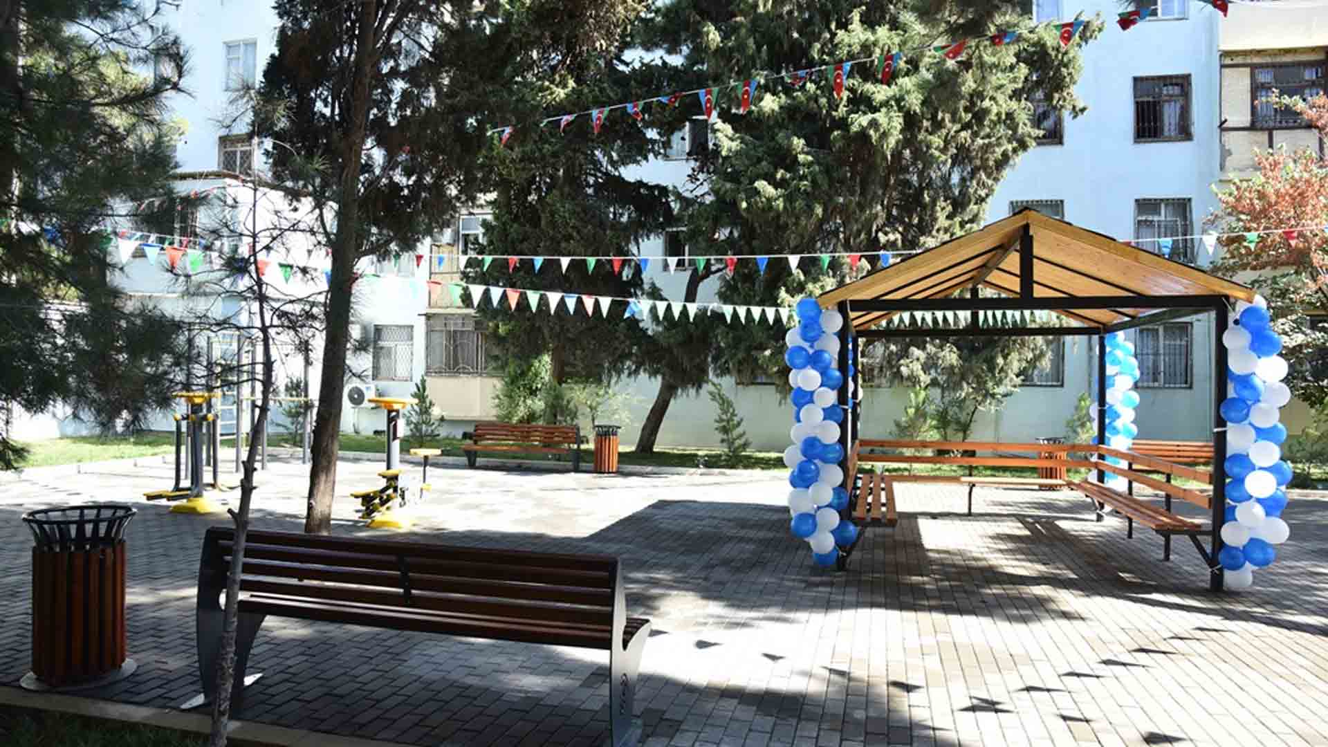 Ərazidə asfalt və tamet daşları vurulub, qazon salınıb, bordürlər qoyulub və digər üzlük işləri görülüb. Həyətdə zəbt olunmuş sahələr əhalinin ümumi istifadəsinə qaytarılıb, kiçik tullantılar üçün zibil qutuları qoyulub. Sahibsiz ev heyvanları üçün damlar və quş yuvaları quraşdırılıb.