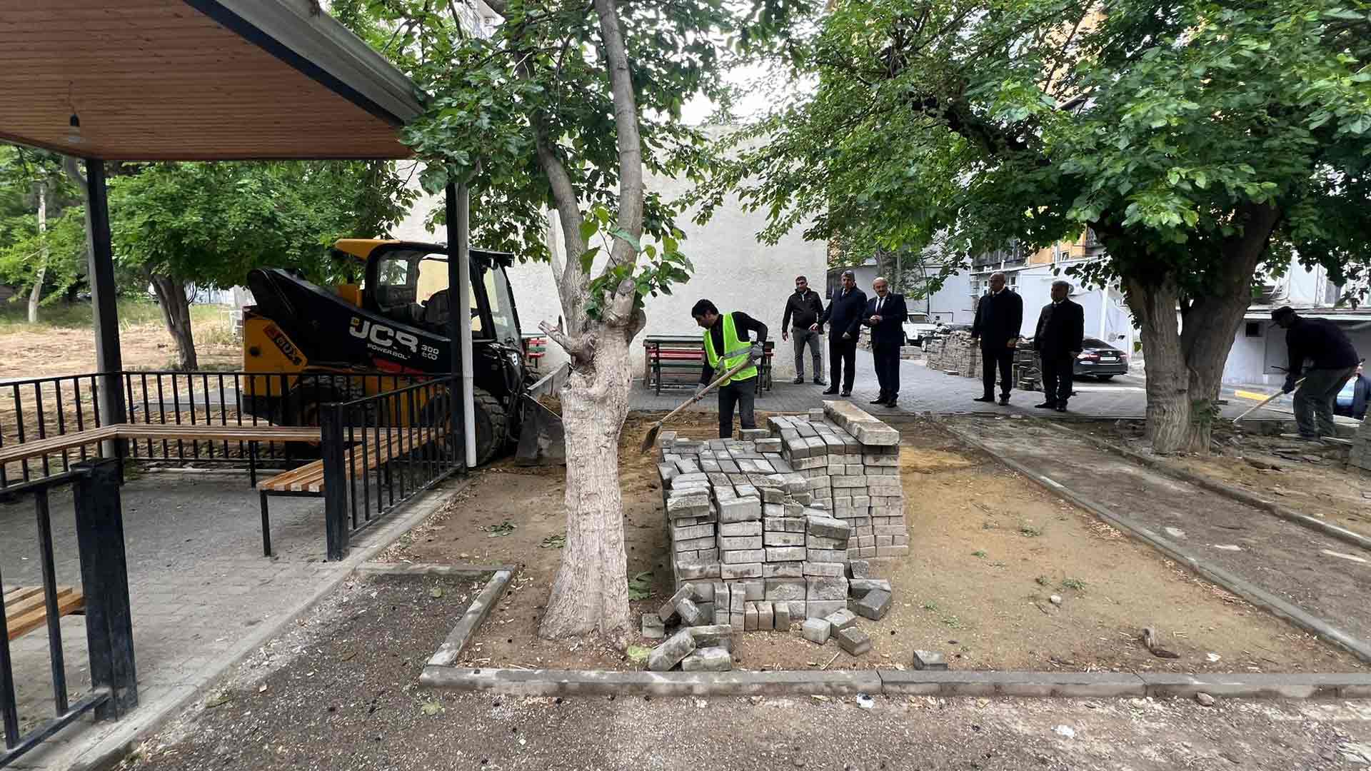Hazırda həyətyanı sahədə abadlıq quruculuq işləri davam etdirilir. Həyətdə tamet bordür daşlarının vurulması, istinad divarlarının bərpası və yaşıllaşdırma işlərinə başlanılıb.