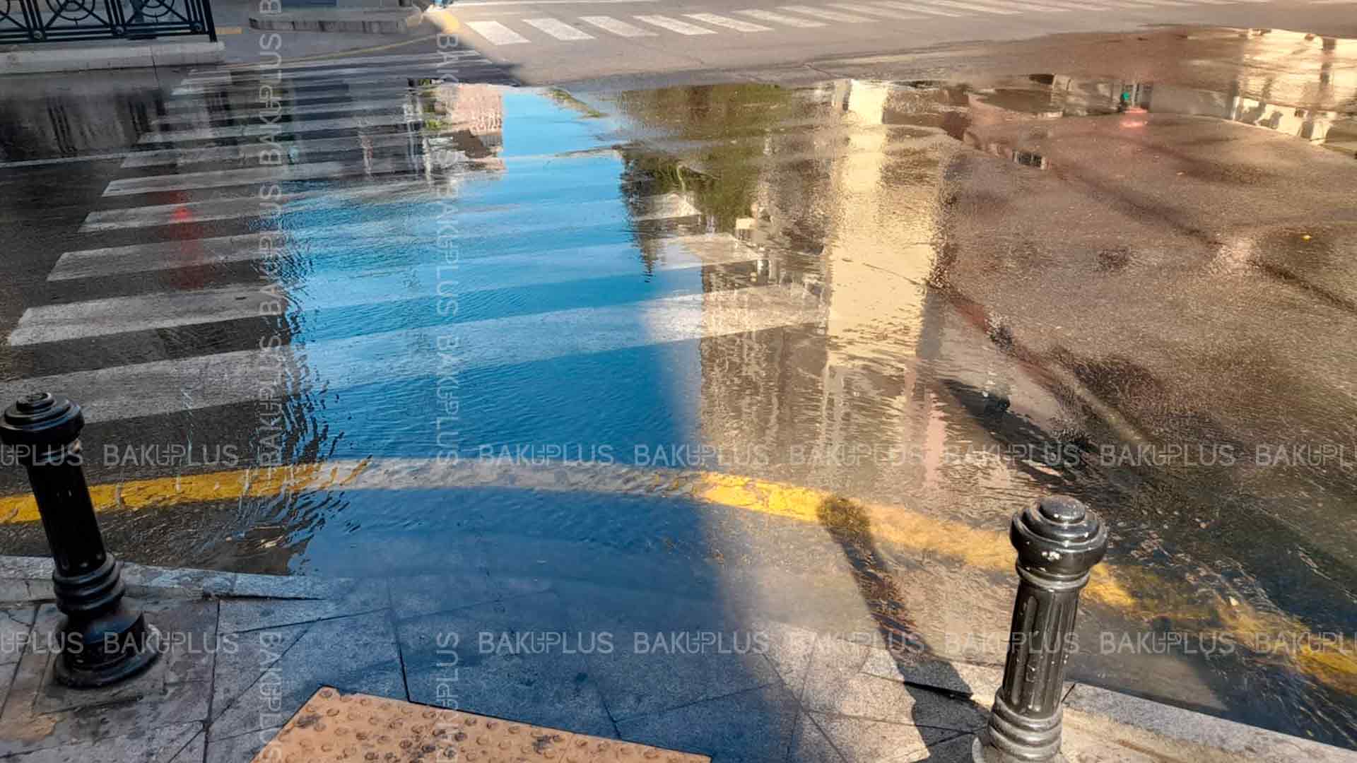 Bakının mərkəzində yolu su basıb. Bu haqda bu gün, 18 iyun tarixində Bakuplus.az xəbər verir.