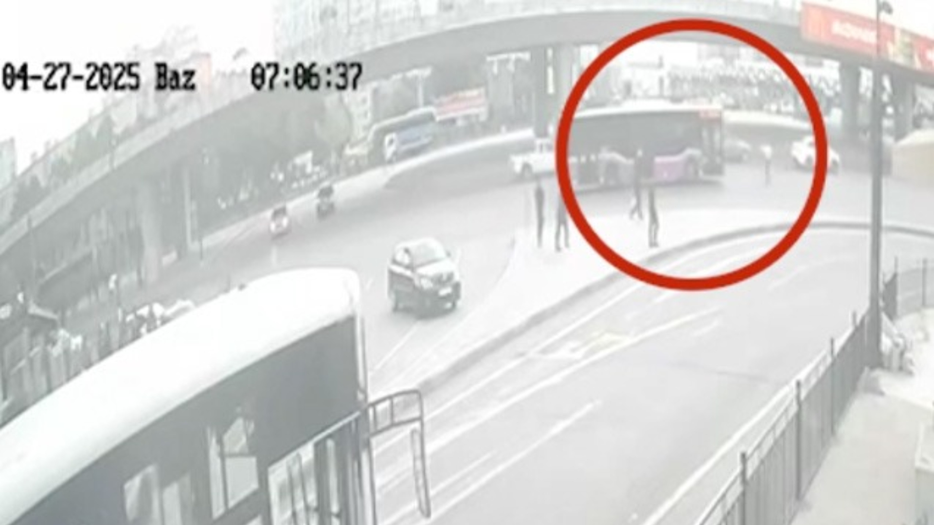 Aprelin 27-də qeydə alınmış görüntülərdən də məlum olur ki, şəxsiyyəti məlum olmayan piyada hərəkətlərinə israrla davam edir və yaxınlıqda olan vətəndaşlar onu dartaraq yolun hərəkət hissəsindən kənarlaşdırırlar.
