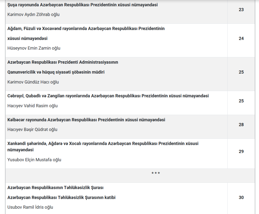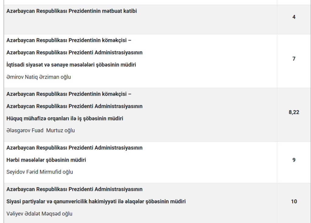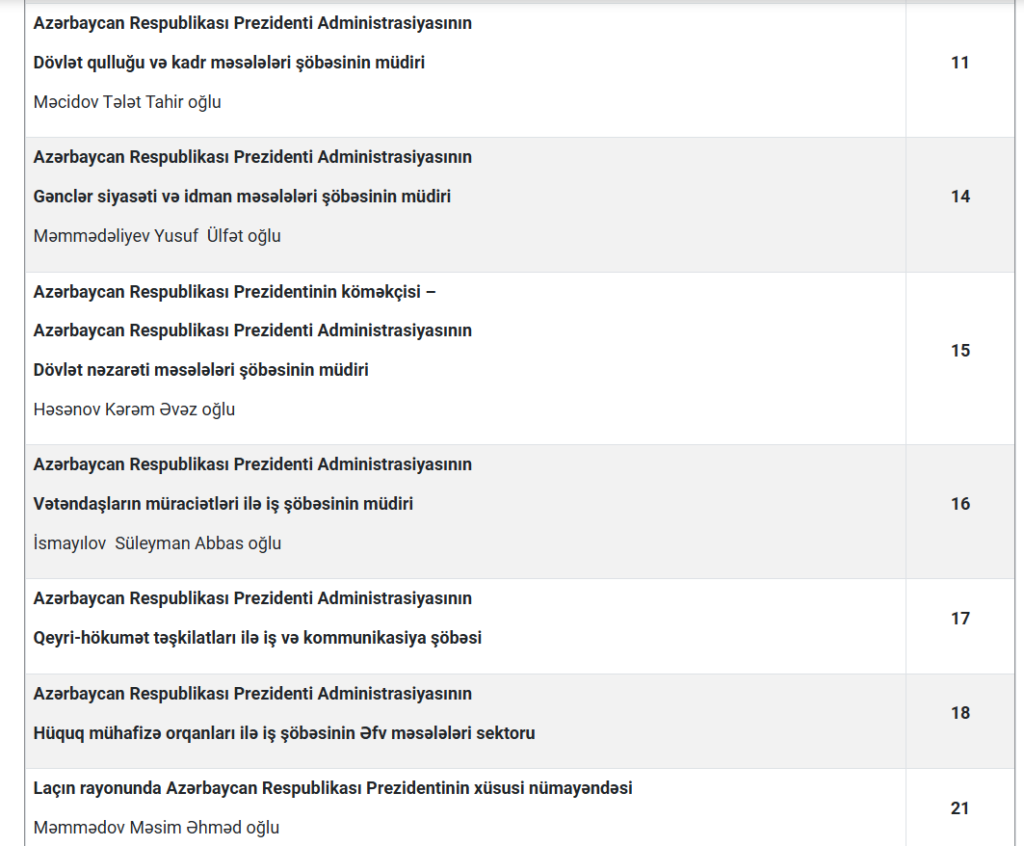 Bakuplus.az cədvəli təqdim edir: