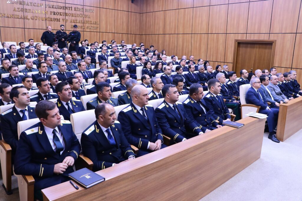 Tədbirdə çıxış edən Baş prokuror Kamran Əliyev tərəfindən geridə qalan 2024-cü ildə ölkəmiz üçün uğurlu olmaqla yanaşı, çoxsaylı əlamətdar hadisələrlə yadda qalması qeyd edilib, 2024-cü ilin əvvəllərində ölkə başçısı cənab İlham Əliyevin növbədənkənar prezident seçkilərində mütləq səs çoxluğu ilə qalib gəlməsi, o cümlədən xilaskarlıqdan qalibiyyətə yüksələn zəfər salnaməsinin memarı, Ümummilli lider Heydər Əliyevin əsasını qoyduğu praqmatik siyasi kursun möhtərəm Prezidentimiz, Silahlı Qüvvələrin Müzəffər Ali Baş Komandanı cənab İlham Əliyev tərəfindən uğurla davam etdirilməsi nəticəsində ölkəmizin sürətli hərtərəfli inkişafının davam etməsi, ölkəmizin regional və beynəlxalq nüfuzunun daha da artması xüsusi vurğulanıb.