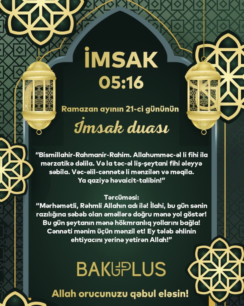 İyirmi birinci günün imsak vaxtı üçün duasını təqdim edirik: