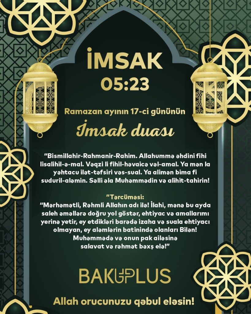 On yeddinci günün imsak vaxtı üçün duasını təqdim edirik: