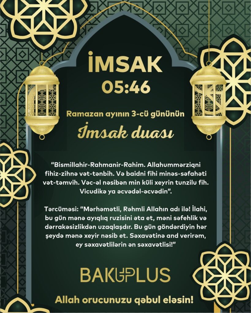 Üçüncü günün imsak vaxtı üçün duasını təqdim edirik: