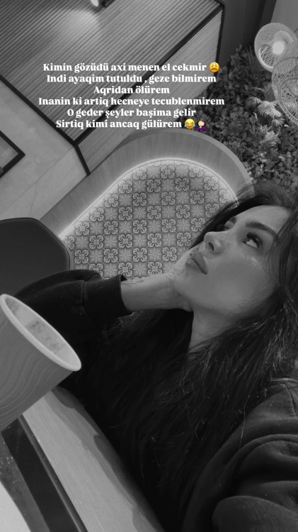 "Kimin gözüdür axı məndən əl çəkmir? İndi ayağım tutuldu, gəzə bilmirəm. Ağrıdan ölürəm. İnanın ki, heç nəyə təəccüblənmirəm. O qədər şeylər başıma gəlir. Sırtıq kimi ancaq gülürəm".