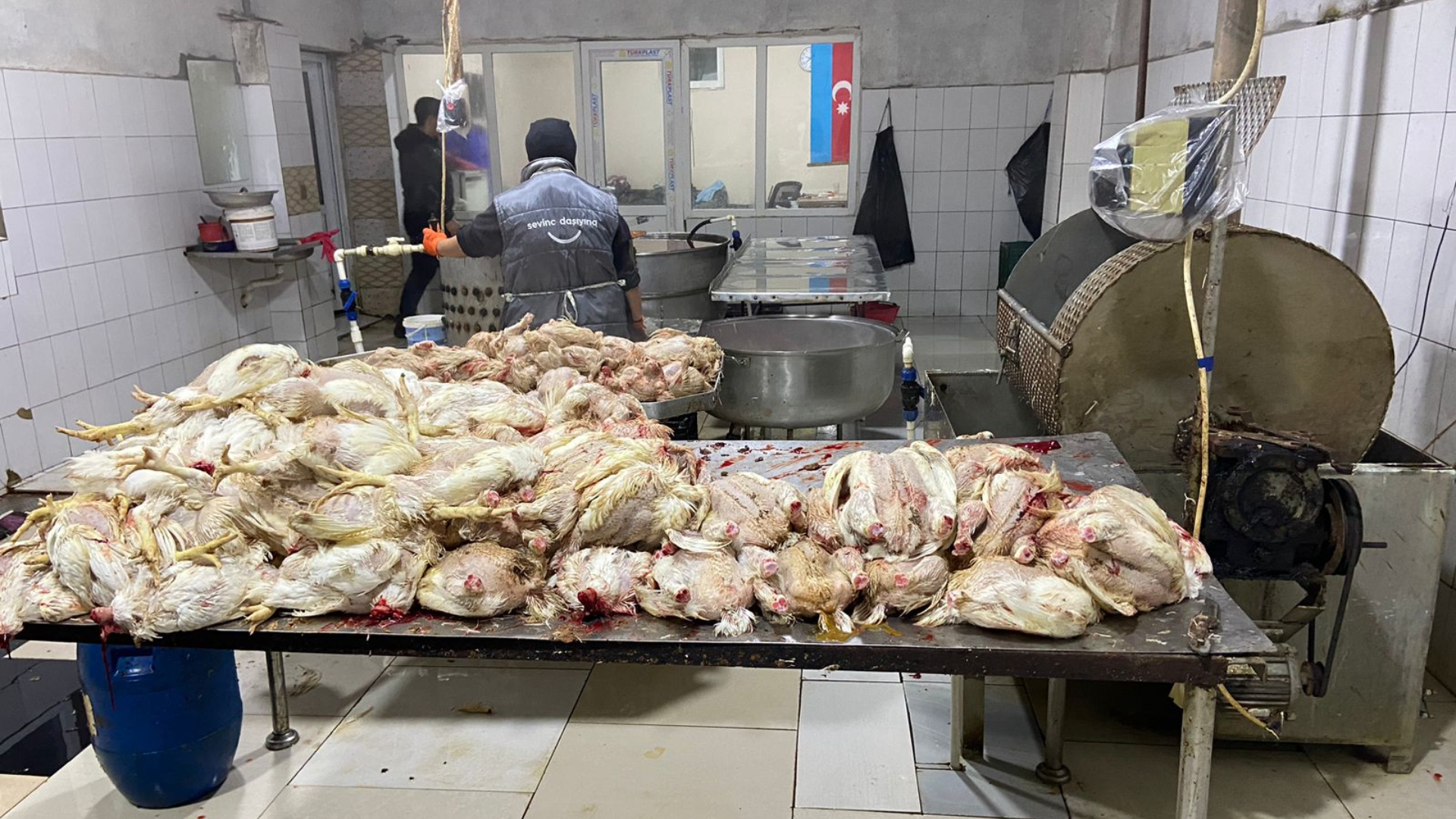 Bakı şəhəri, Sabunçu rayonu, İ.Rəhimov küçəsi 14 ünvanında fəaliyyət göstərən ev quşlarının kəsimi məntəqəsində yoxlama zamanı ciddi nöqsanlar aşkarlanıb.