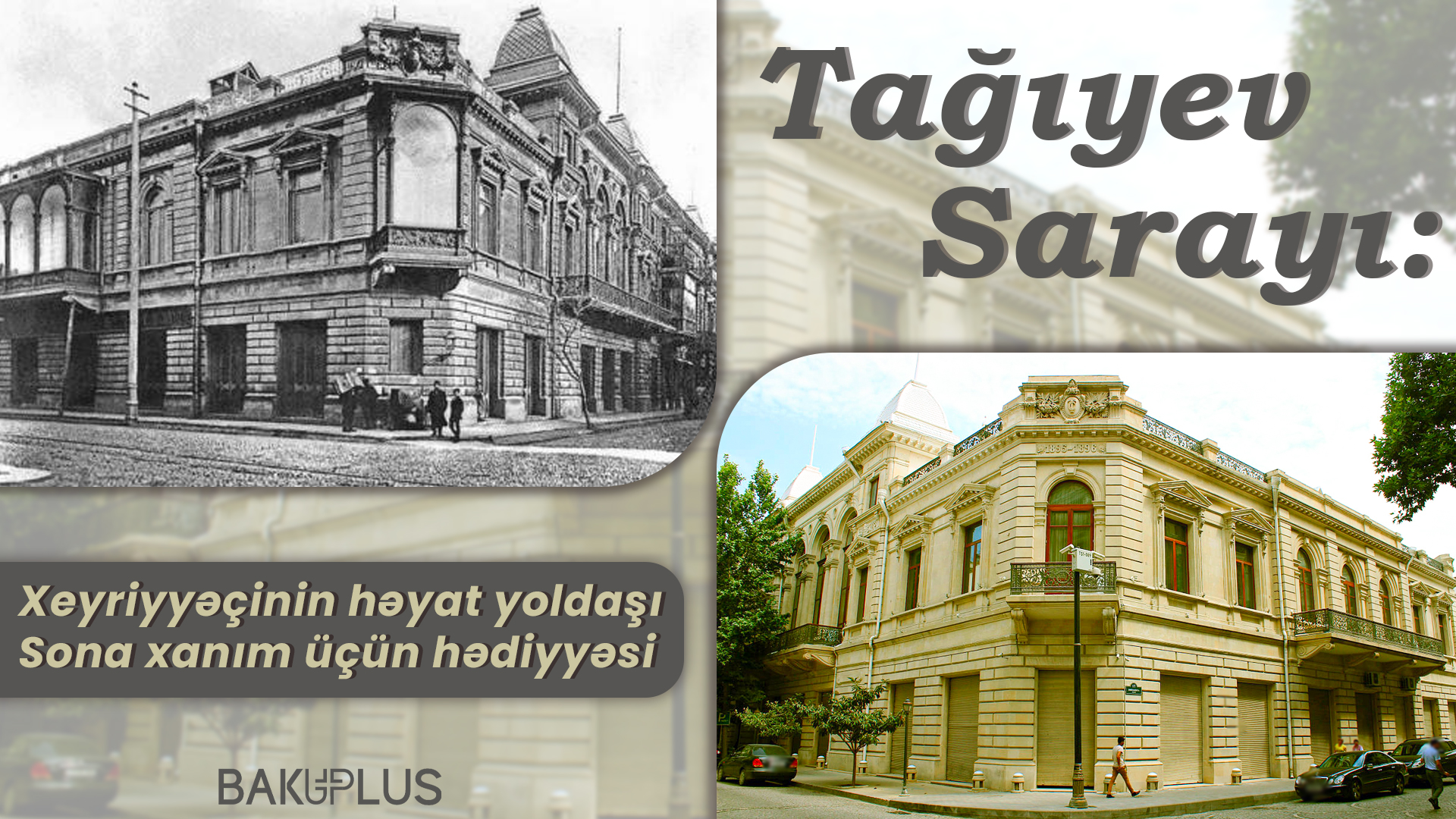Bina xeyriyyəçi Hacı Zeynalabdin Tağıyevin və ailəsinin yaşayış evi olub. Saray Tağıyevin həyat yoldaşı Sona xanım üçün hədiyyəsi idi. Tikilinin bir neçə yerində Sona xanımın ad və soyadının baş hərflərinə rast gəlmək olar.