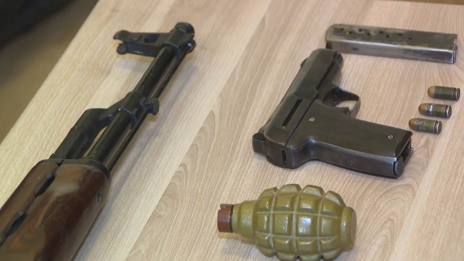 Dəstə başçısı Anar İsmayılovun Binə qəsəbəsində yaşadığı evə baxış zamanı satış məqsədilə əldə etdiyi 1 kiloqramdan artıq heroin, 1 ədəd “F-1” əl qumbarası, 1 ədəd “Lankaster” markalı tüfəng, 1 ədəd “Makarov” konstruksiyalı tapança və 25 ədəd patron aşkar edilib.