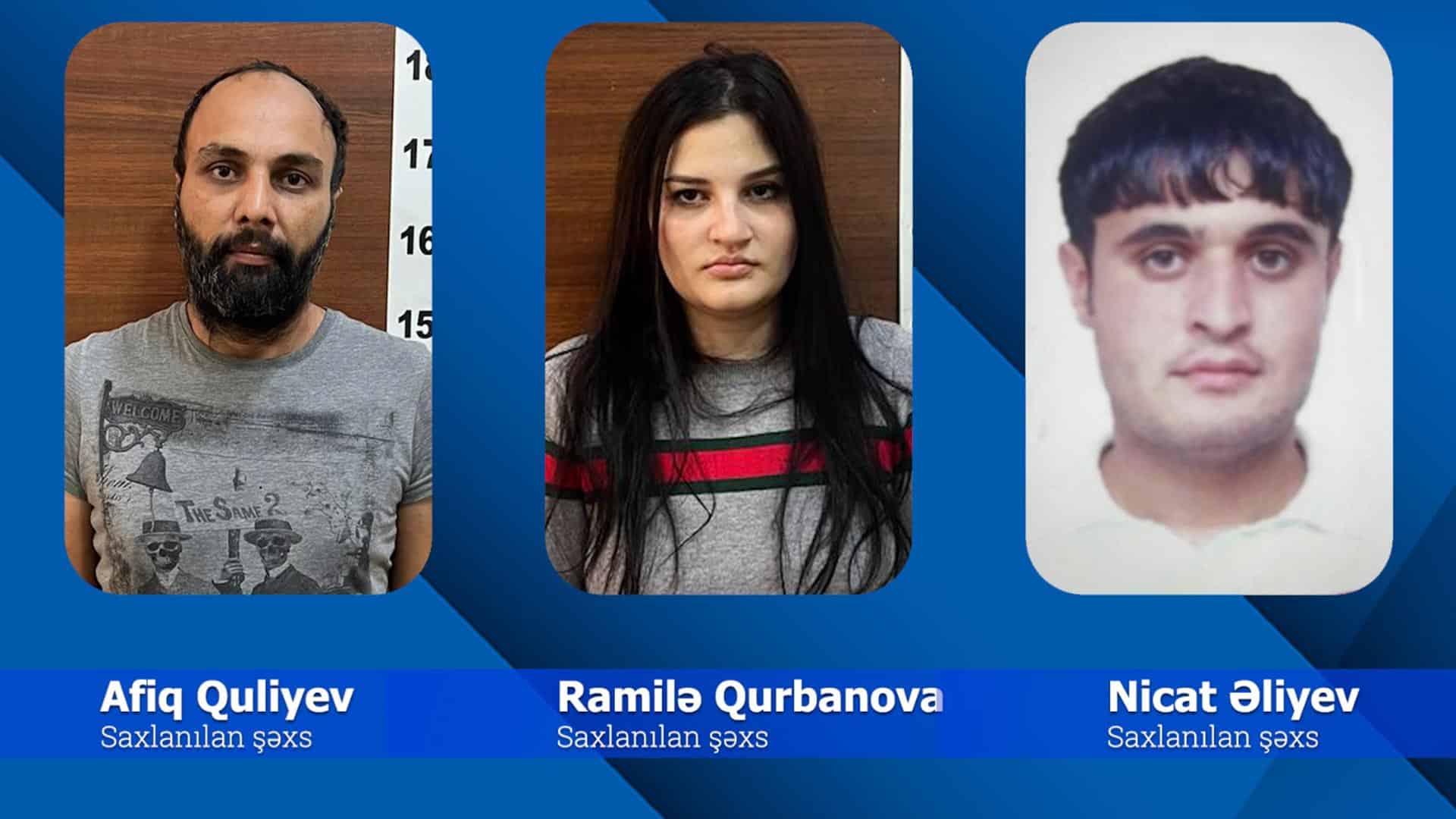 Keçirilən əməliyyat zamanı Bakı şəhər sakinləri – 22 yaşlı Afiq Quliyev, 22 yaşlı Ramilə Qurbanova və 36 yaşlı Nicat Əliyev saxlanılıblar. Onlardan ümumilikdə 10 kiloqrama yaxın heroin, marixuana, eləcə də metadon və metamfetamin aşkar edilib.