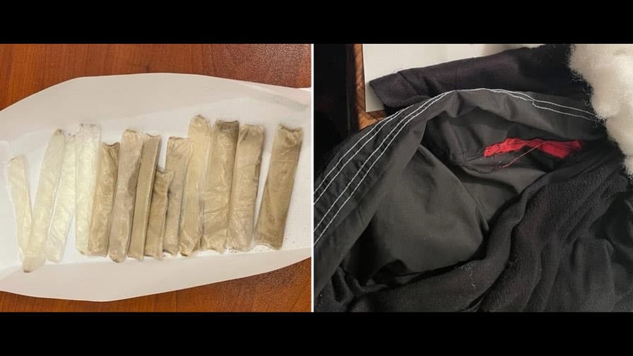 Dusdağa gətirilən gödəkçənin astar hissəsində xüsusi üsulla gizlədilən sellofan bükülülərdə ümumi çəkisi 7 qram olan heroin və 2 qram metamfetamin aşkar edilib.