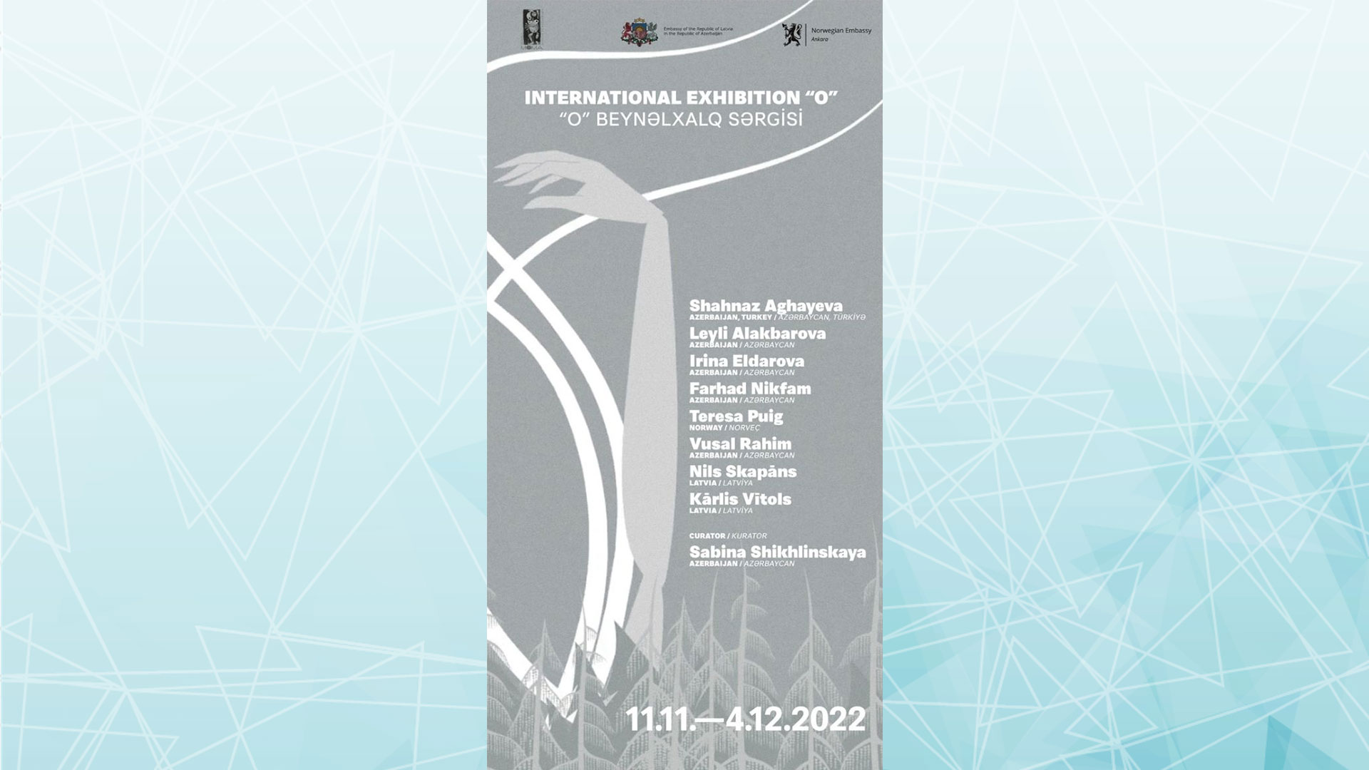 Latviyanın Azərbaycandakı səfirliyi Birləşmiş Millətlər Təşkilatının Azərbaycandakı nümayəndəliyi və Norveç Krallığının Ankaradakı səfirliyi ilə birgə gender bərabərliyi mövzusunda “O” Beynəlxalq Müasir İncəsənət Layihəsini təşkil edir. Layihə bu il BMT Təhlükəsizlik Şurasının Qadınlar, Sülh və Təhlükəsizlik haqqında 1325 saylı Qətnamənin qəbul edilməsinə həsr olunub.