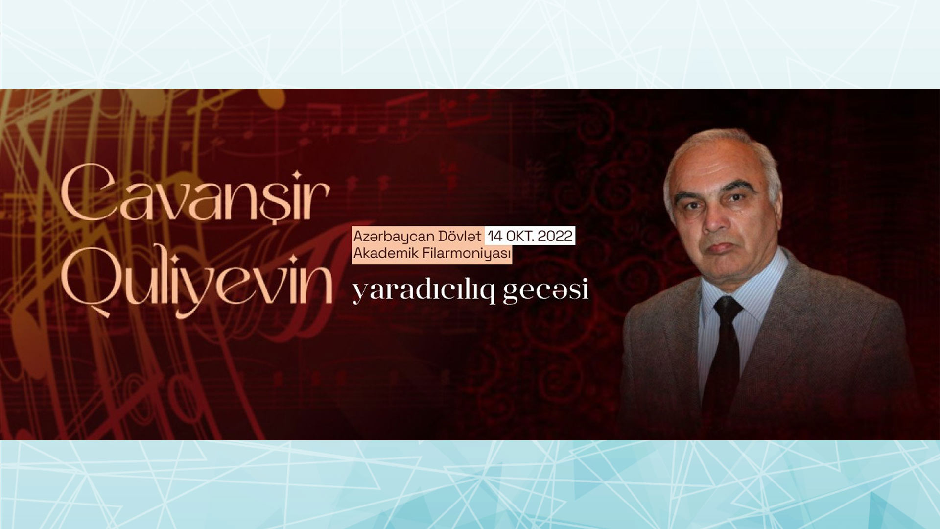 Bakıdakı Dövlət Akademik Filarmoniyasında Cavanşir Quliyevin yaradıcılıq gecəsi oktyabrın 14-ü keçiriləcək. Bu haqda bu gün, 17 sentyabr tarixində Bakuplus.az məlumat verir.