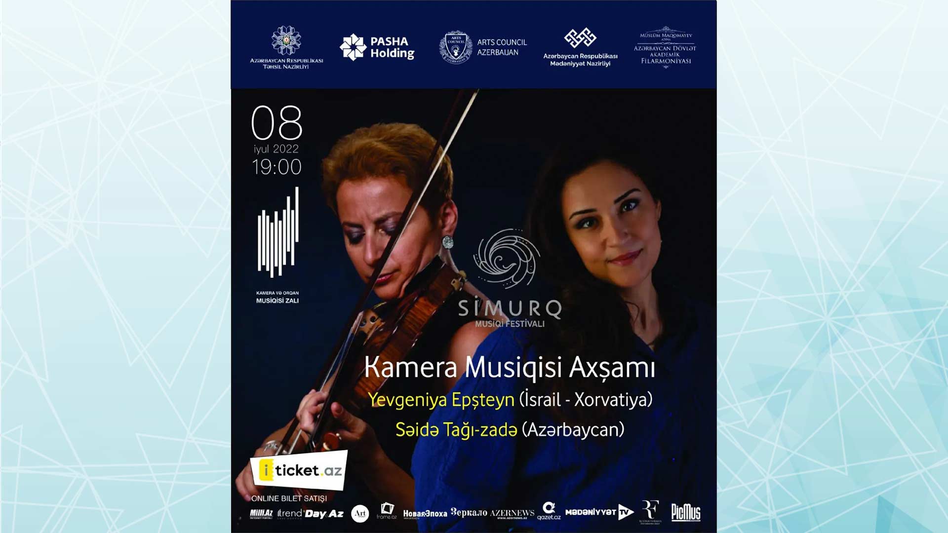 Səhnədə skripkaçı Yevgeniya Epşteyn (İsrail-Xorvatiya) və fortepianoçu Səidə Tağı-zadə (Azərbaycan) çıxış edəcəklər.