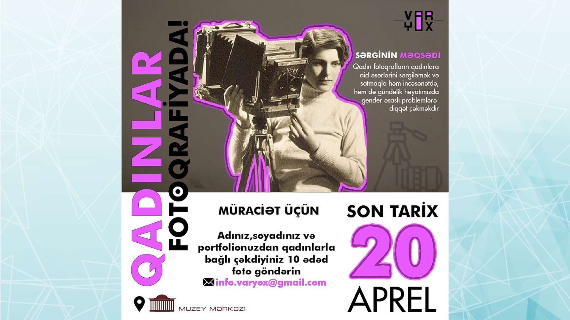 Müraciət edənlərdən info.varyox@gmail.com elektron ünvanına ad, soyad və portfoliosundan qadınlarla bağlı çəkdiyi minimum 5, maksimum 15 ədəd foto göndərmək xahiş olunur.