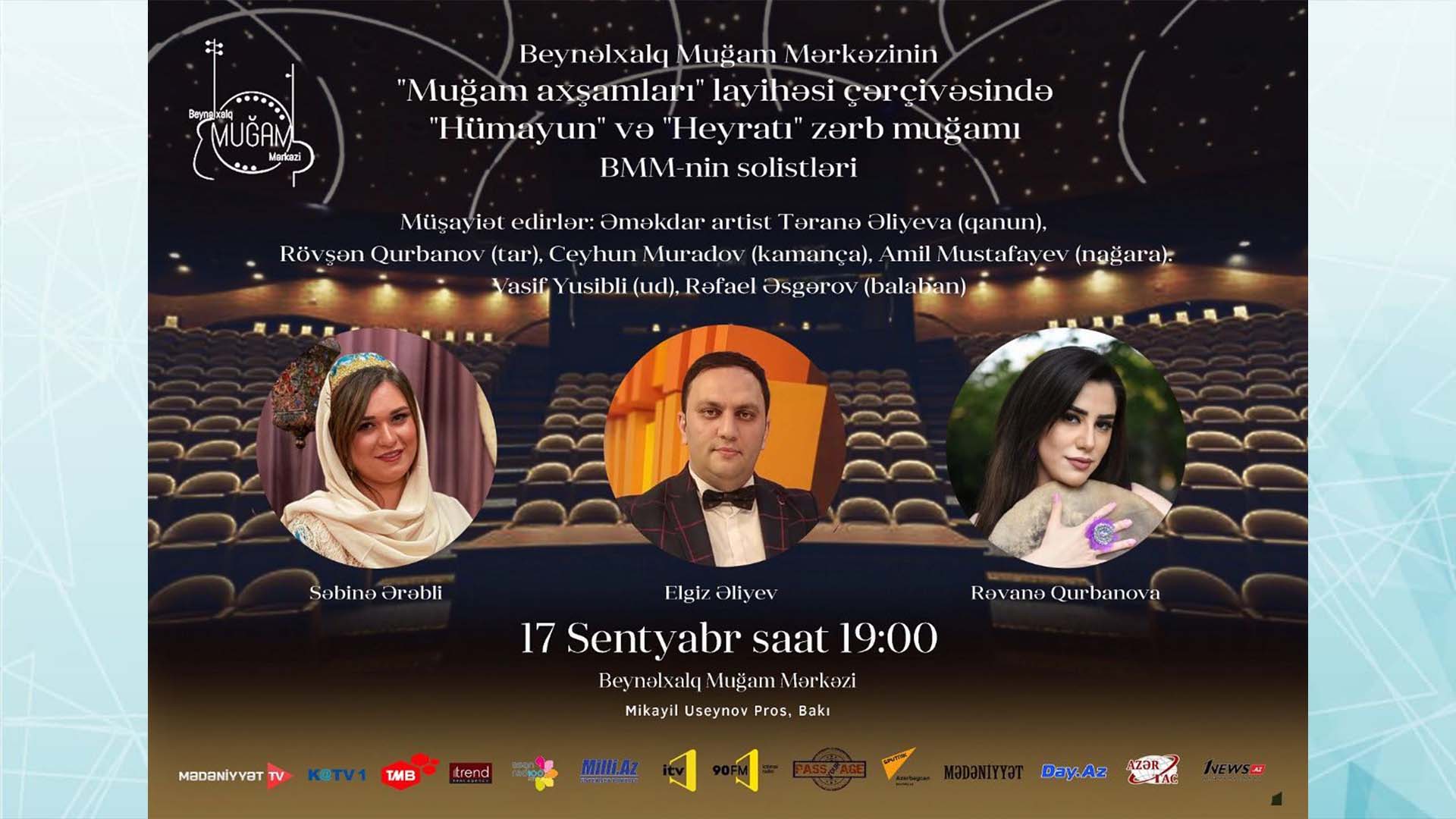 17 sentyabr saat 19:00-da Beynəlxalq Muğam Mərkəzində nəzərdə tutulan “Muğam axşamları” konserti 29 sentyabr tarixinə keçirilib. Əldə edilən biletlər 29 sentyabr tarixində etibarlı olacaq.