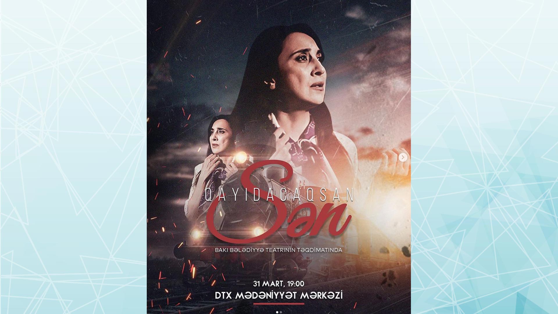 DTX Mədəniyyət Mərkəzində martın 31-də Bakı Bələdiyyə Teatrının təqdimatında "Sən Qayıdacaqsan" tamaşası nümayiş olunacaq.