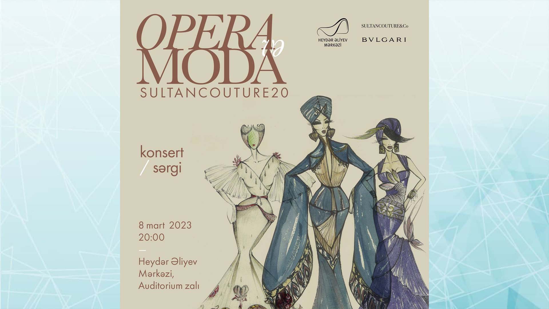 8 Mart - Beynəlxalq Qadınlar Günündə Heydər Əliyev Mərkəzi “Opera və moda. Sultan Couture 20” adlı konsert proqramı və sərgi təqdim edəcək. Bu haqda mərkəzin mətbuat xidməti bu gün, 31 yanvar tarixində məlumat verib.