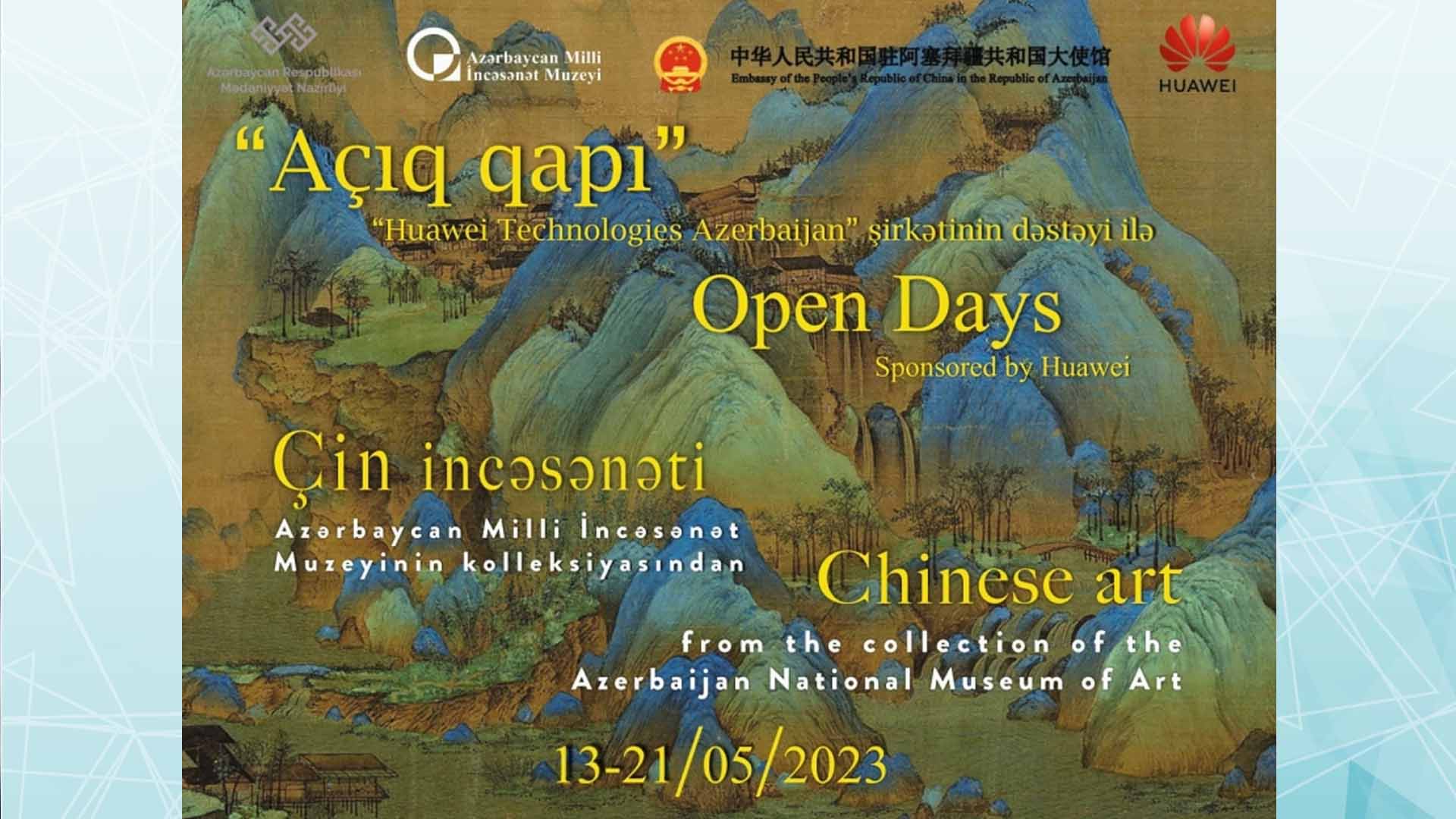 Azərbaycan Milli İncəsənət Muzeyinin, Azərbaycan Respublikasının Mədəniyyət Nazirliyinin və Çin Xalq Respublikasının Azərbaycandakı səfirliyinin birgə təşkilatçılığı ilə keçirilən sərgi mayın 13-dən 21-dək davam edəcək.