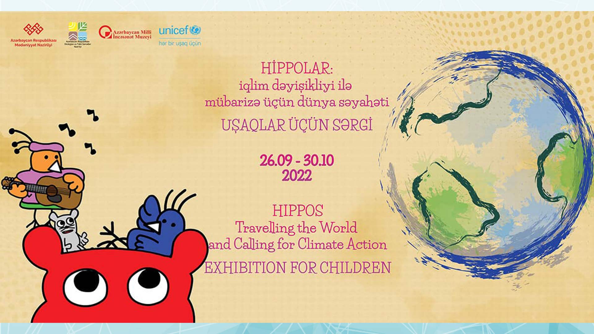 Azərbaycan Milli İncəsənət Muzeyində uşaqlar üçün iqlim fəaliyyətinə dair xüsusi hazırlanmış “Hippolar: iqlim dəyişikliyi ilə mübarizə üçün dünya səyahəti” sərgisi çərçivəsində 9-30 oktyabr 2022-ci il tarixlərində “Açıq qapı” günləri elan edilib.