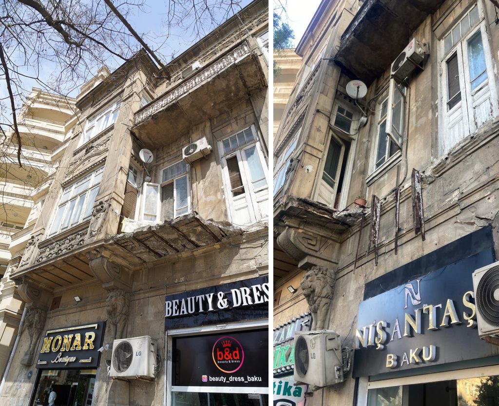 Bakıda “Nizami” metro stansiyası yaxınlığındakı tarixi binanın eyvanının bir hissəsi uçub. Bakuplus.az xəbər verir ki, bu barədə professor Elçin Əliyev Facebook sosial şəbəkəsində məlumat paylaşıb. Hadisə təxminən gecə saat 02:00-da baş verib.
