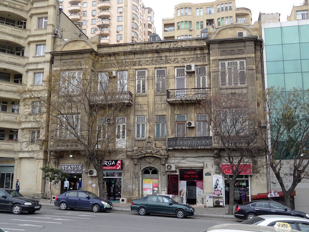 Professor qeyd edib ki, Cəfər Cabbarlı küçəsi 3-də yerləşən və Kərbəlai Ələkbər Hacıyevin binası kimi tanınan bu memarlıq abidəsi 1910-1912-ci illərdə rus memarı Aleksandr Polyakovun layihəsi əsasında inşa edilib.