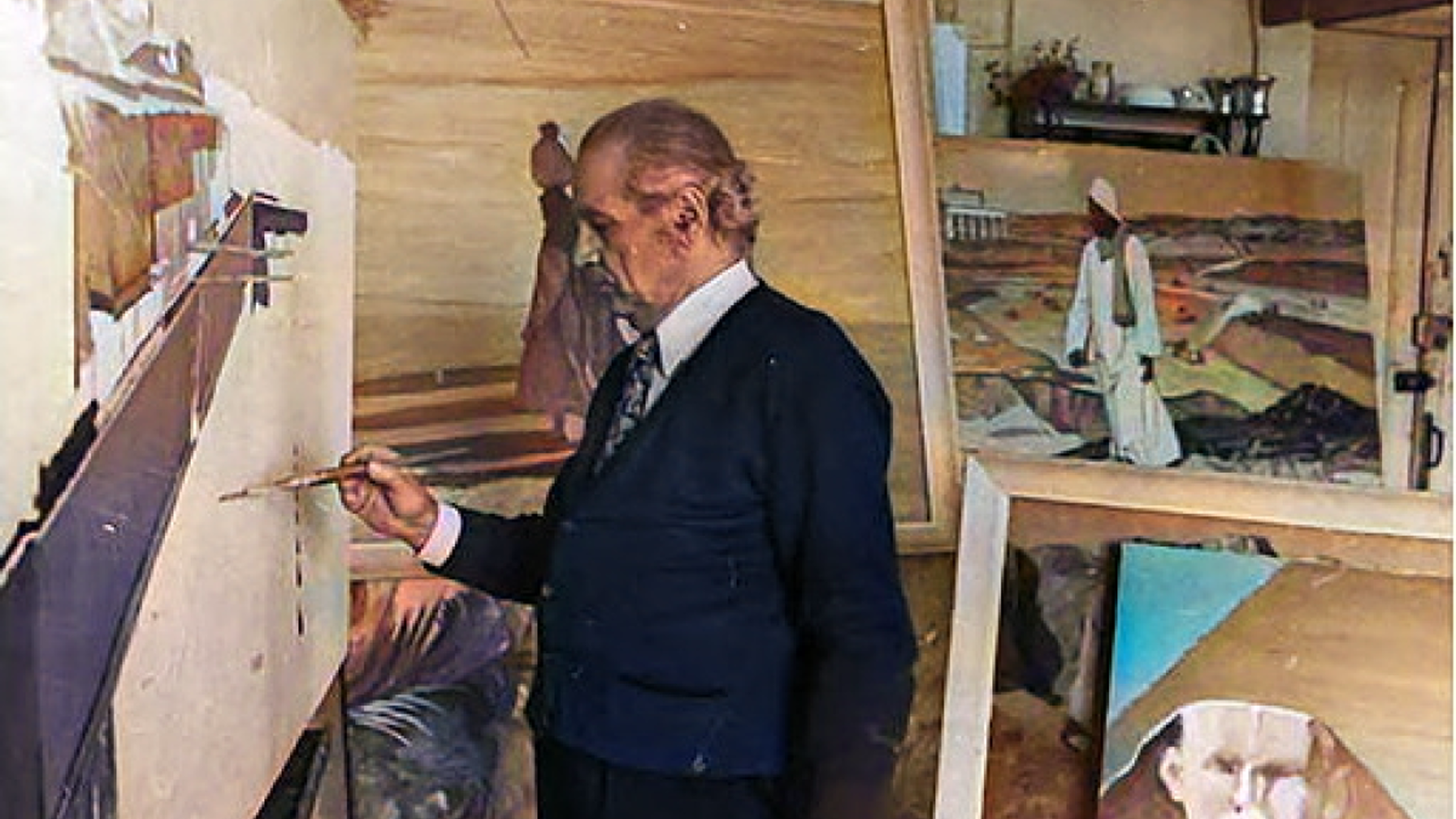 Süjetli tablo və mənzərə əsərlərindən isə "Rüstəmin Əfrasiyabla döyüşü" (1934), "Günəş altında" (1958), "Sovxoz çölləri" (1959), "Suya gedən qadınlar" (1968), "Çay plantasiyası" (1970), "Rəfiqələr" (1970), "Qürub çağı" (1973), "Toya gedənlər" (1974), "Astara subtropik sovxozu" (1976), "Rezervuarlar" (1976), "Lənkəran çaybecərənləri" (1977) və digərlərini qeyd etmək olar.