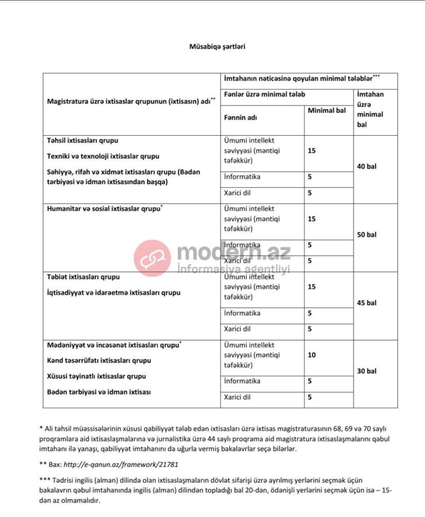 Modern.az saytı DİM-dən magistraturaya müsabiqə şərtlərini əldə edib.