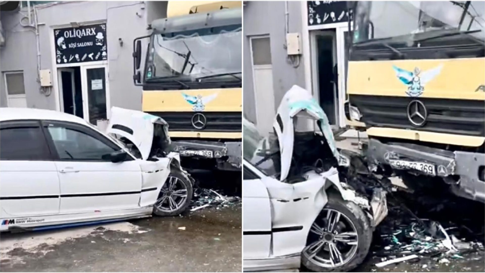 Avtosfer.az-ın məlumatına görə, qəza yanvarın 28-də səhər saatlarında qeydə alınıb. Belə ki, hərəkətdə olan “BMW” markalı avtomobil 99-TB-369 dövlət nömrə nişanlı “Mercedes Atego” markalı yük maşınına çırpılıb. Qəzaya səbəb “BMW” sürücüsünün anidən idarəetməni itirməsi olub. Nəticədə maşın tamamilə yararsız vəziyyətə düşüb, sürücünün əli sınıb.