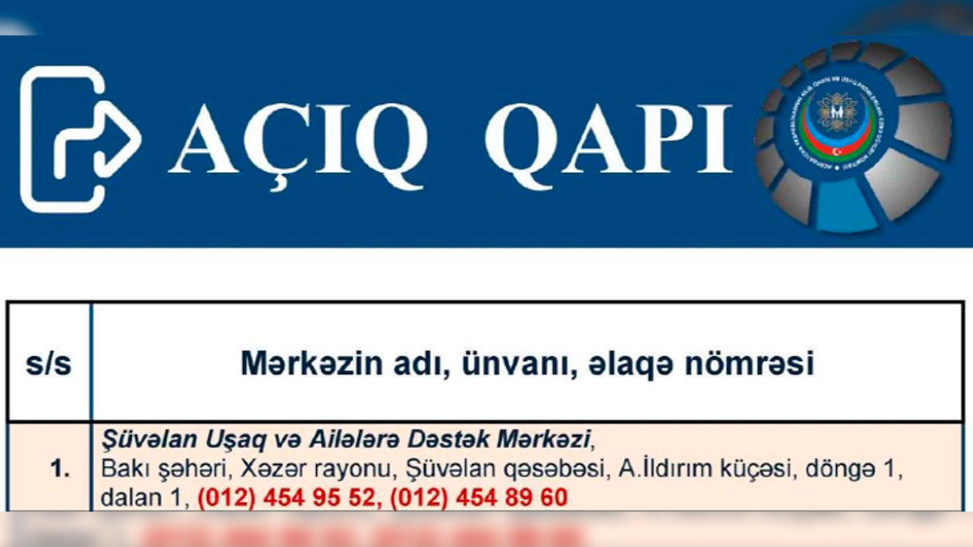 Aprelin 24-də saat 10:00-17:00 aralığında Dövlət Komitəsinin uşaq və ailələrə dəstək mərkəzlərində görüşlər keçiriləcək. Tədbirdə psixoloq, sosial işçi və hüquqşünaslar iştirak edəcəklər.