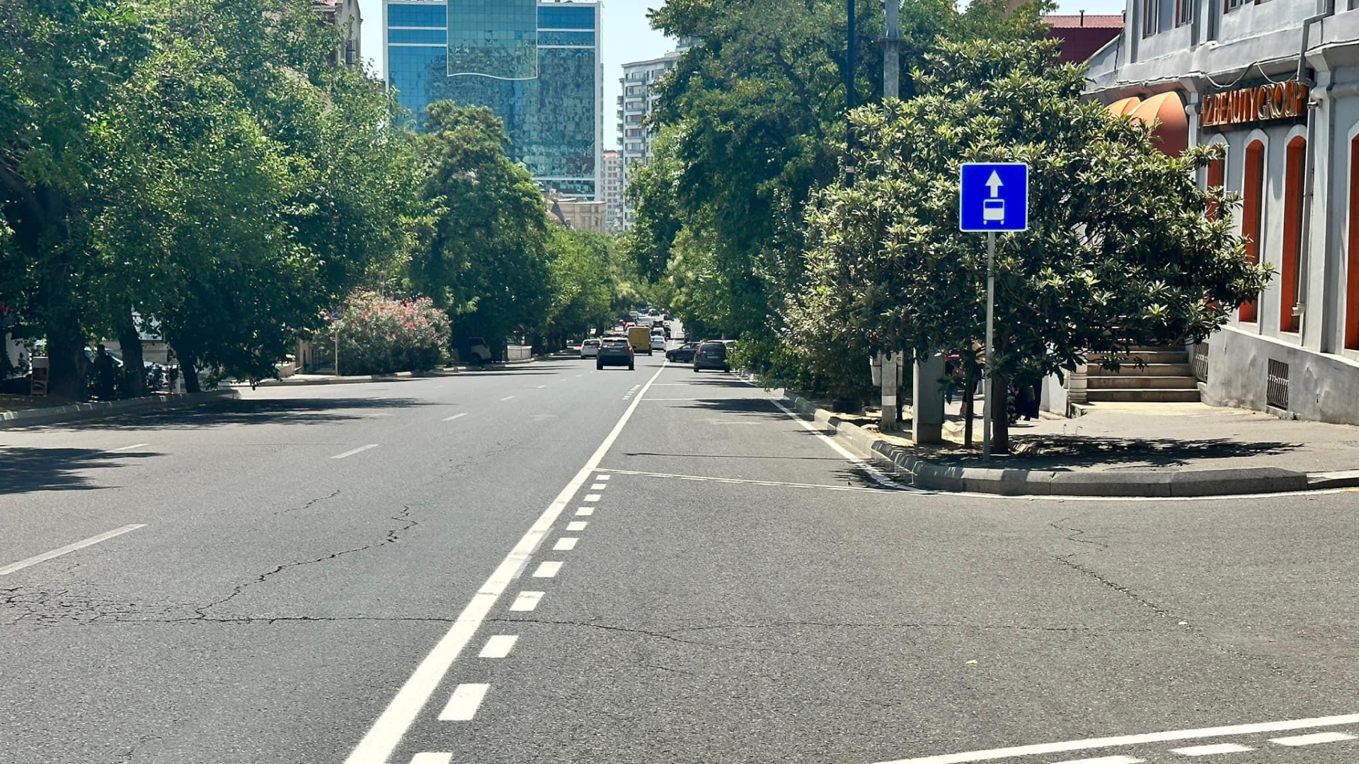 Abbasqulu ağa Bakıxanov küçəsi ilə kəsişmədən Əlibəy Hüseynzadə küçəsi ilə kəsişməyə qədər avtobus zolaqlarının tələblərinə uyğun olaraq nişanlanma xətləri çəkilib və müvafiq yol nişanları quraşdırılıb.